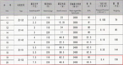 Z2-52 7.5KW/110V直流電機(jī)參數(shù)圖